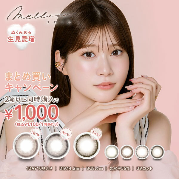 普段と違う魅力を引き出す!カラコンで新しい自分へ【新色販売記念】1箱あたり1,100円(税込)!まとめ買いキャンペーン メロール 1箱10枚 2箱セット (メール便送料無料) カラコン melloew メロール 14.5mm ワンデー 1day UVカット 生見愛瑠 度なし 度あり カラーコンタクト コンタクトレンズ 目元から始まる新しい美しさの発見。 ショップ:ビューティージャングル